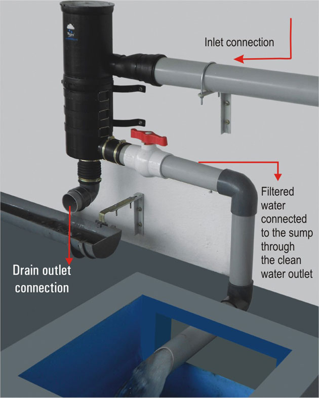 The characteristic features of FL Series Dual Intensity RWH Filter is its capacity to take up the load up to 10 to 350 square meters of Roof area with variable intensity of rainfall of 5 to 75 mm/ hour with a discharge capacity of 10 To 340 Liters per minute. This filter can be conveniently used for Harvesting Rainwater for Individual Households, Schools, Apartments, Institutions, Hospitals and Commercial Buildings of Medium and small sizes.